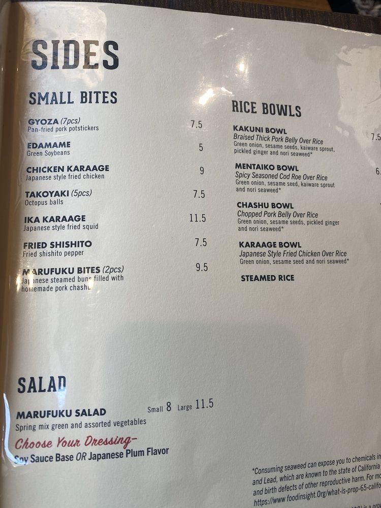 Hakata style ramen with rich pork broth. Regular toppings (chashu pork (simmered pork belly), seasoned soft boiled egg, green onions, kikurage mushrooms, bean sprouts) and buta kakuni (braised thick pork belly), corn, and nori seaweed. Consuming seaweed can expose you to chemicals including cadmium and lead, which are known to the state of California to cause cancer and birth defects of other reproductive harm.